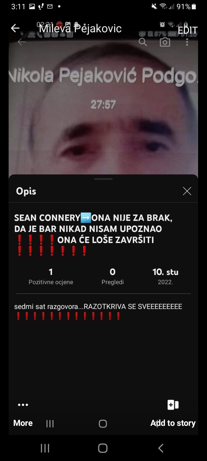 radi protiv mene te da objavljije lazi I klevete o meni na njenom youtube