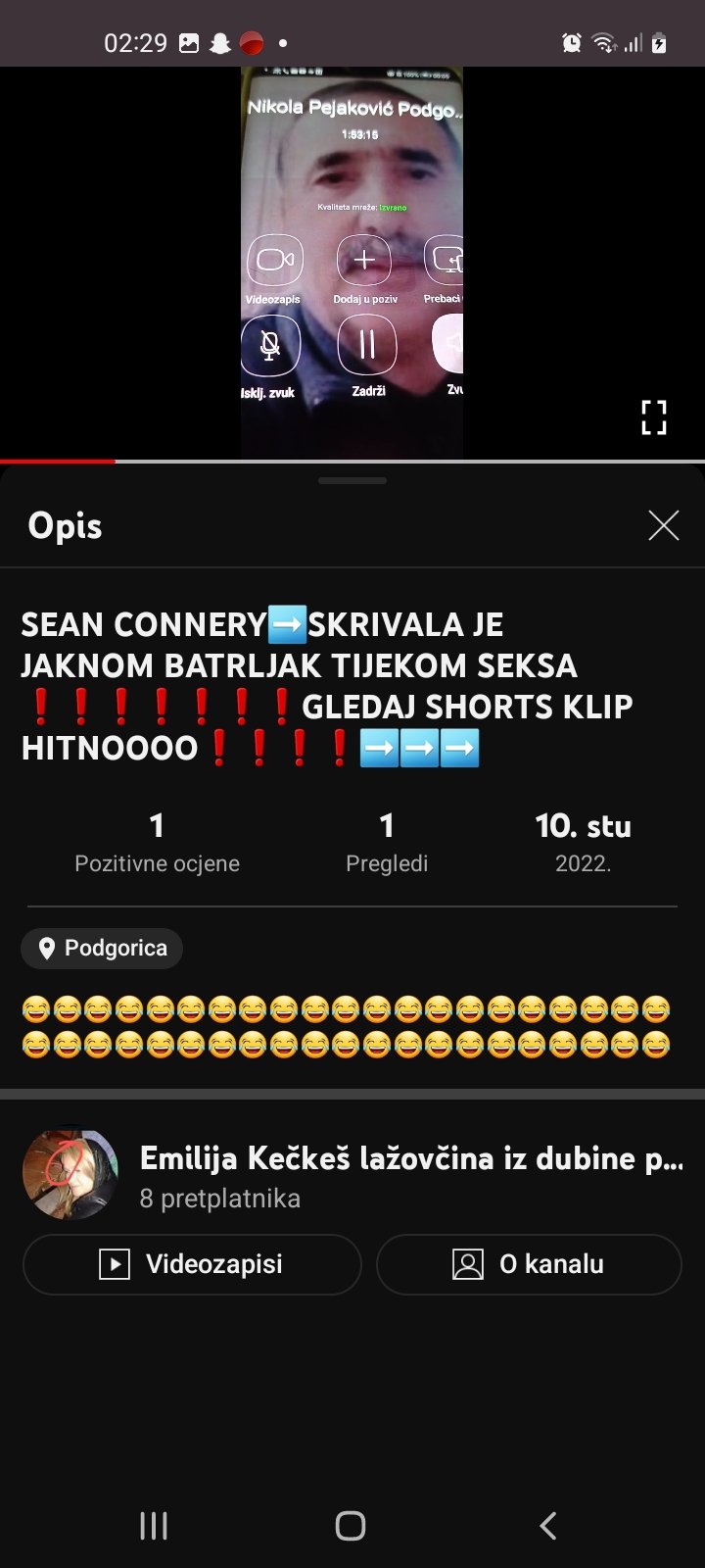 zlostavljacki youtube kanal koji je otoren u ime Emilije Keckes gde je